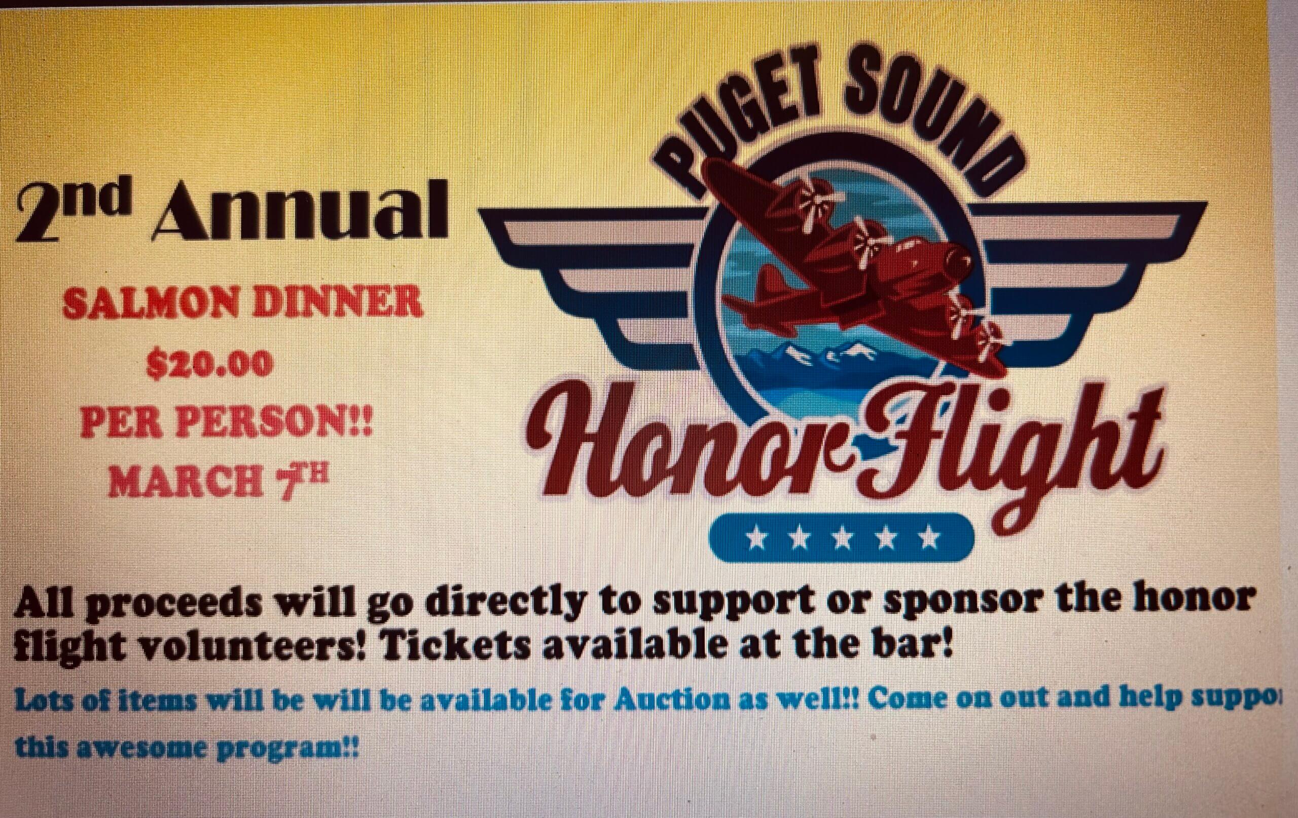 Please join us on Saturday March 7th at the Albert J Hamilton Post 7 American Legion for the 2nd annual Puget Sound Honor Flight Dinner & Auction.